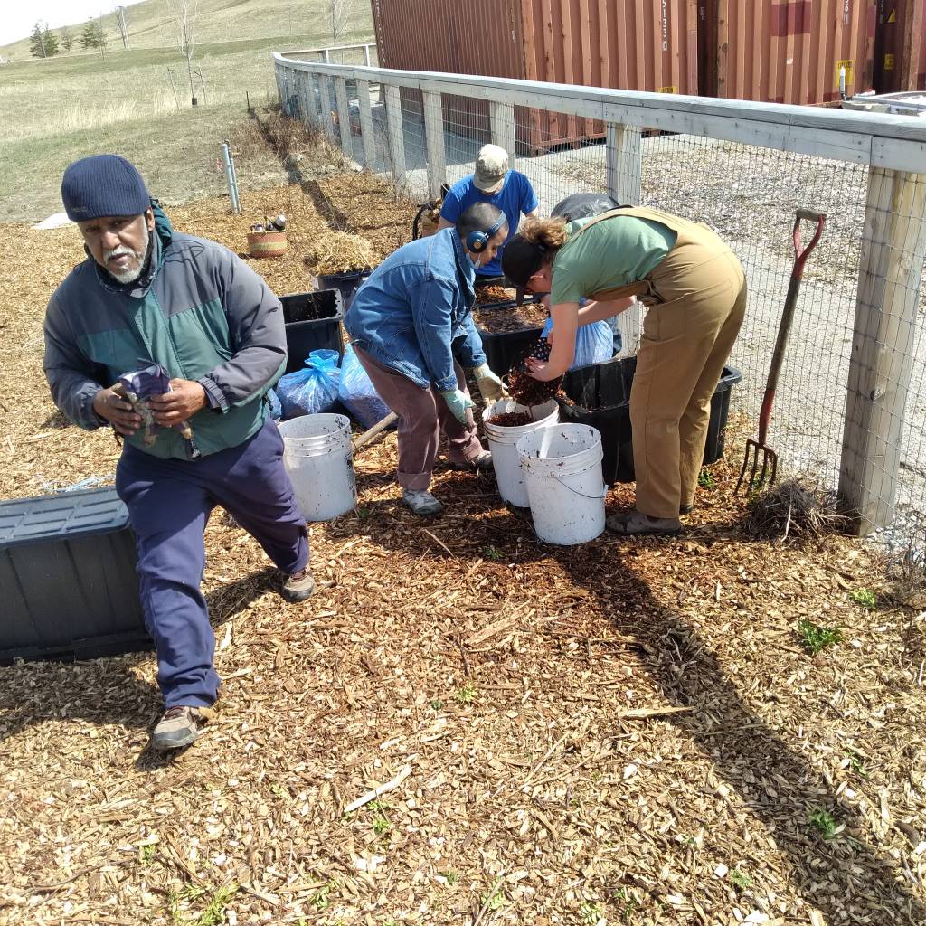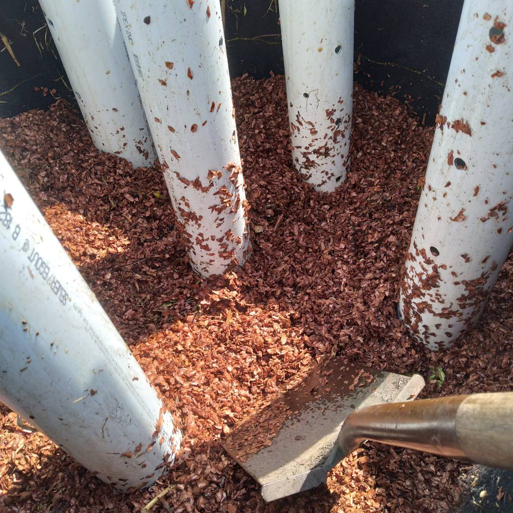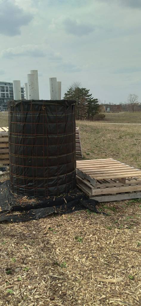 first workshop at the new CRAY@Downsview compost classroom now in the books: 5 enthusiastic growers out to learn about hot composting, the techniques involved in the Johnson-Su composting method, and to pitch in labour to help fill our first bioreactor on site at Downsview: about 60% woodchip, 30% cocoa shell, 8% rye straw, and 2% shrub trimmings…. it will be ready in Spring 2025.