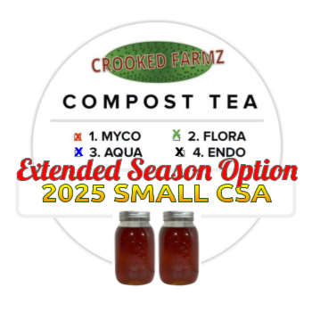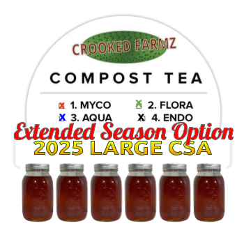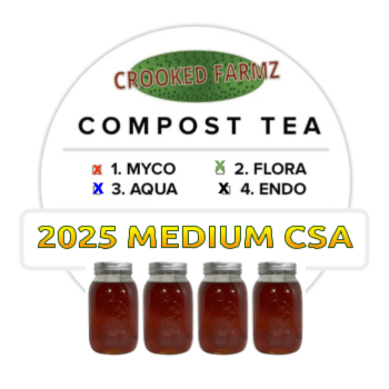 Crooked Farmz CSA subscriptions include 4 freshly-brewed compost teas, delivered to you on prescribed dates once per month from June until September. These are available in four sizes: