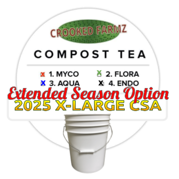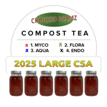 At Crooked Farmz our CSA subscription model allows us to farm and cultivate microbes to be delivered to you as a series of four freshly-made compost teas to boost your overall soil health and plant health over the course of a summer.