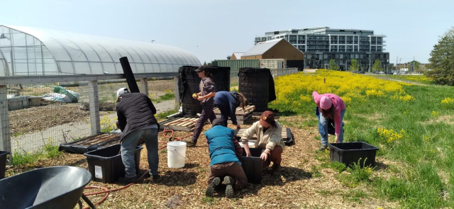 This work initially began as a scaled-down pilot model of the bioreactor in a backyard Earth Machine composter about 15% of the size to suit backyard farming or other urban agriculture contexts. Today, we continue to build our new bioreactors to their proper scale at CRAY@Downsview.