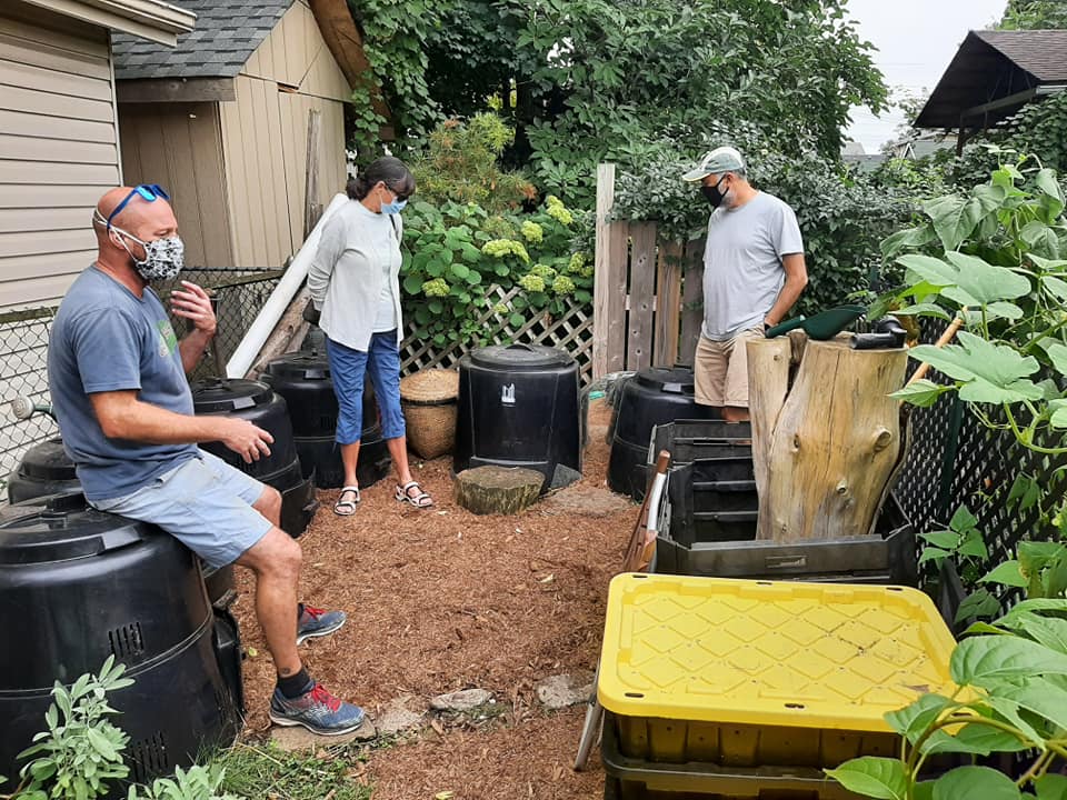 Crooked Farmz offers miniature versions of a “farm tour” for our miniature no-till backyard farm and compostery in East York as part of Toronto Urban Agriculture Week festivities in September, and at other times throughout the season. The tour looks at some infrastructure considerations in context, the compost working area specifically, and the brewing space for our compost tea business.