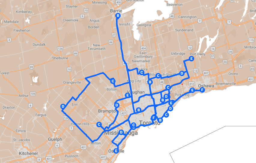 - Running through Toronto, GTA, and the surrounding Greenbelt area.